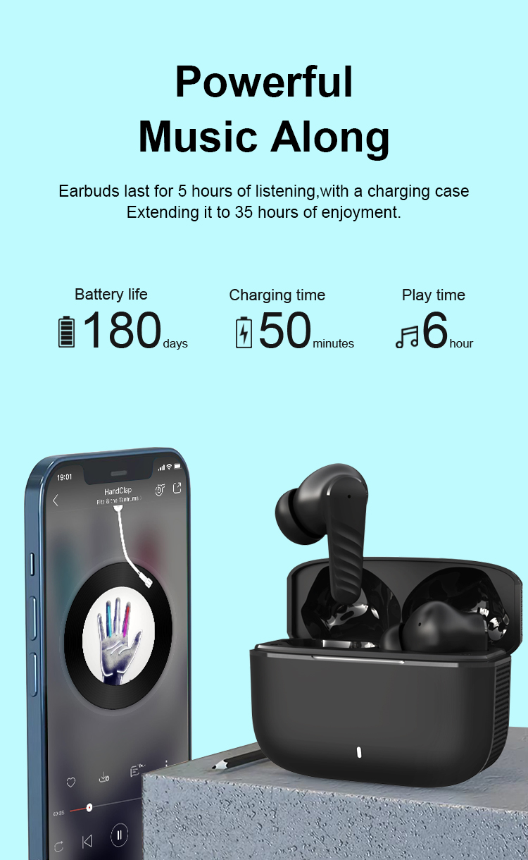 🔋 Fast Charging – 0.5h for earbuds, 2h for case